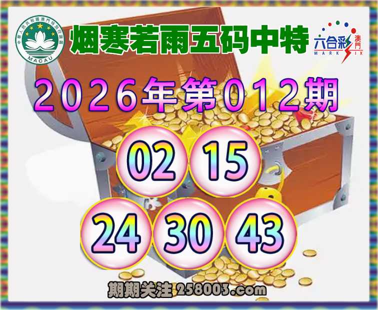 012期: 🚡《烟寒若雨》 🚡五码中特🚡【02.15.24.30.43】开:11